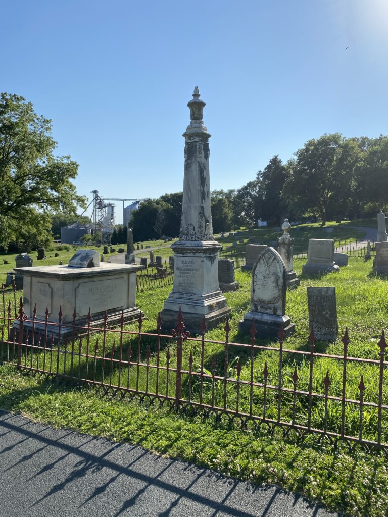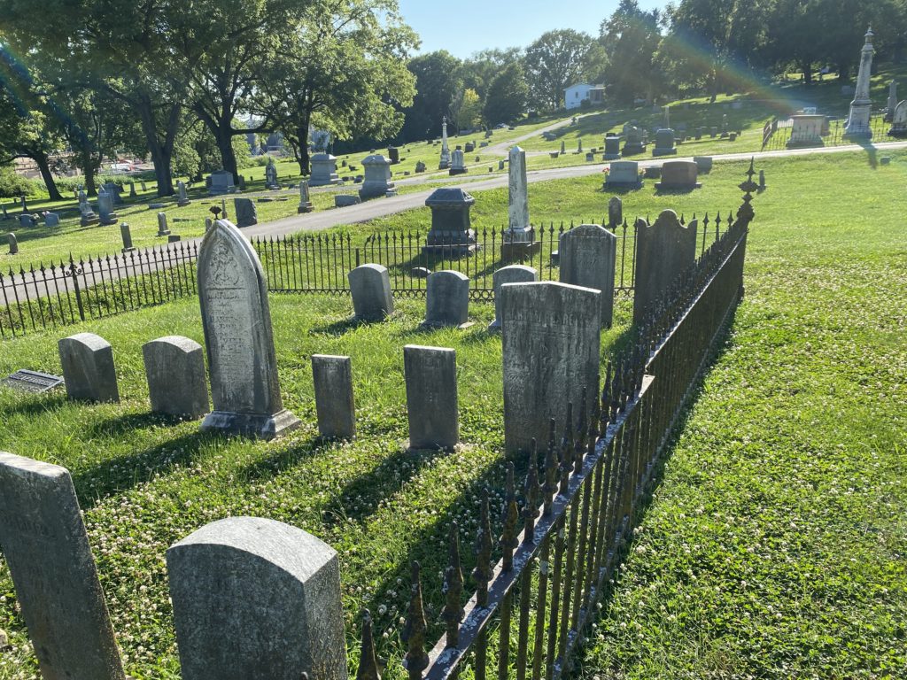 At your next immediate right, you arrive at Washington Cemetery. Take a walk around the cemetery to see the plots and graves of the many Glasgow founding families.