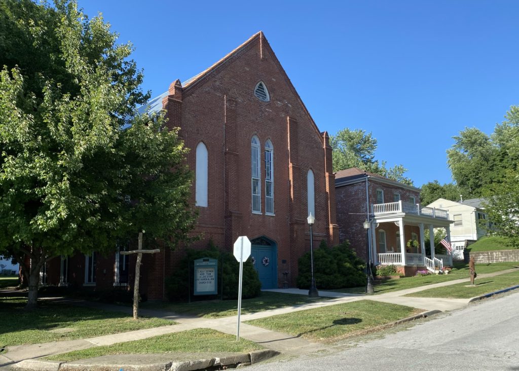 As you take a left onto 4th Street at the Glasgow Community Museum, you will see the Methodist Chapel and Parsonage on the left before reaching the First Methodist Church and Lewis Library on the end corners of the block at Market. During the Battle of Glasgow in 1864, the church served as a hospital, mending soldiers from both sides of the Civil War battlefield, which was soon to near its end in 1865.